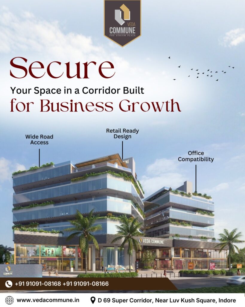 Finding the right Business space for rent Indore is crucial for long-term growth. Veda Commune provides contemporary commercial units with excellent road connectivity and visibility, ideal for companies that want to establish a strong market presence. The location ensures easy access for clients, employees, and partners alike.